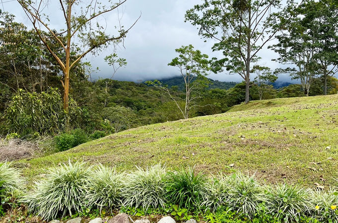 This lot is conveniently located nearest to the property gate on the main road without sacrificing views! Look one way and the mountains soar high above, look the other and see the beautiful valley with San Isidro de El General in the distance. Water, electric, and fiber ready!
